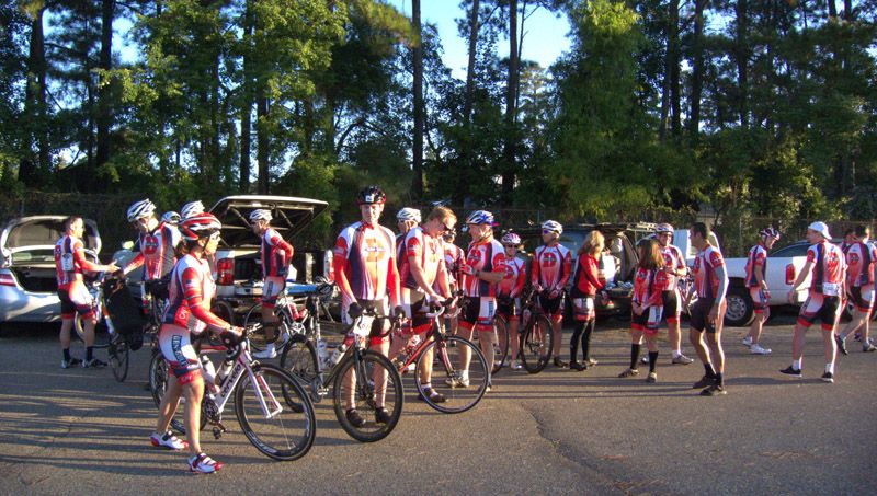 At this time it turned out that group two (all the B's) actually was in front of us, so they were a little surprised when they all of a sudden got police escort and were told they were now the lead front group with less than 10 miles to the finish line. However that lasted only about 30 seconds as our lead out Puerto Rican pony Tony put the hammer down along with the other Dan-Gulf stallions Todd, Bob, Jorge and Reggie, and we passed up the second group that had ridden 6 miles less at this time with about 31 mph. With a group effort we managed to get our riders to the finish line first, although a NOLA Bull rider (Keith) was trying to sneak in a sprint after he latched on to our front group from group two when we passed that group up, but no cigar! Alex from our office also managed to catch on from group two to our group, but politely stayed in the back at the finish line, otherwise he knew he would get fired. We finished the about 80 miles in 3 hours 25 minutes, so a good work out for our A group!